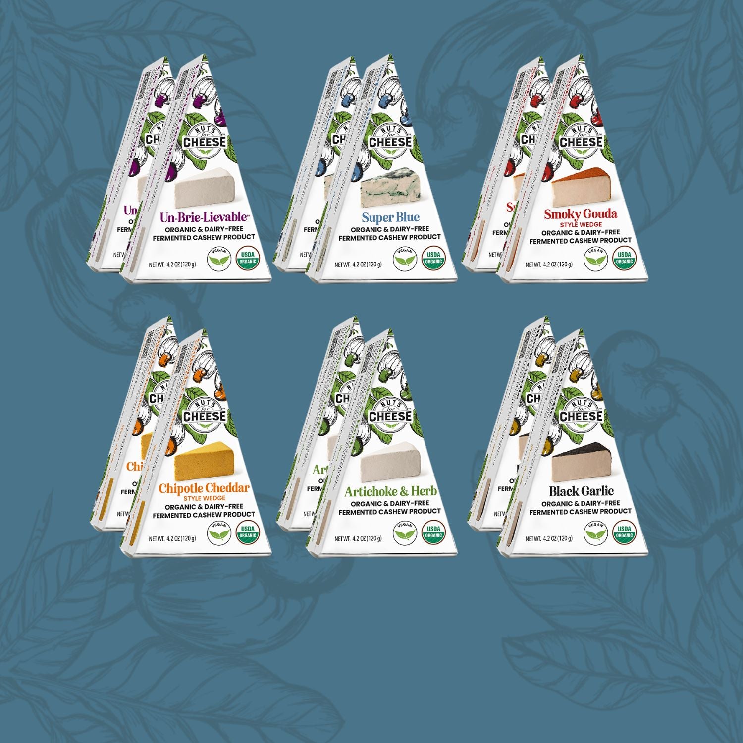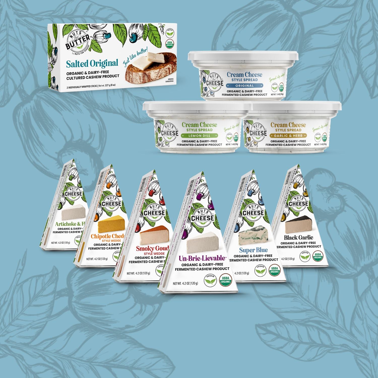 Let’s taco ‘bout this mashup! Flour tortillas stuffed with plant-based ground beef, a creamy Un-Brie-Lievable cilantro lime crema, onions and jalapeños. Spectacular. Give us 14 of them right now!