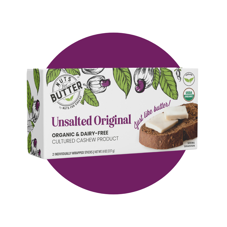 Unsalted Original Cashew Vegan Butter Nutrition Facts Purple Background